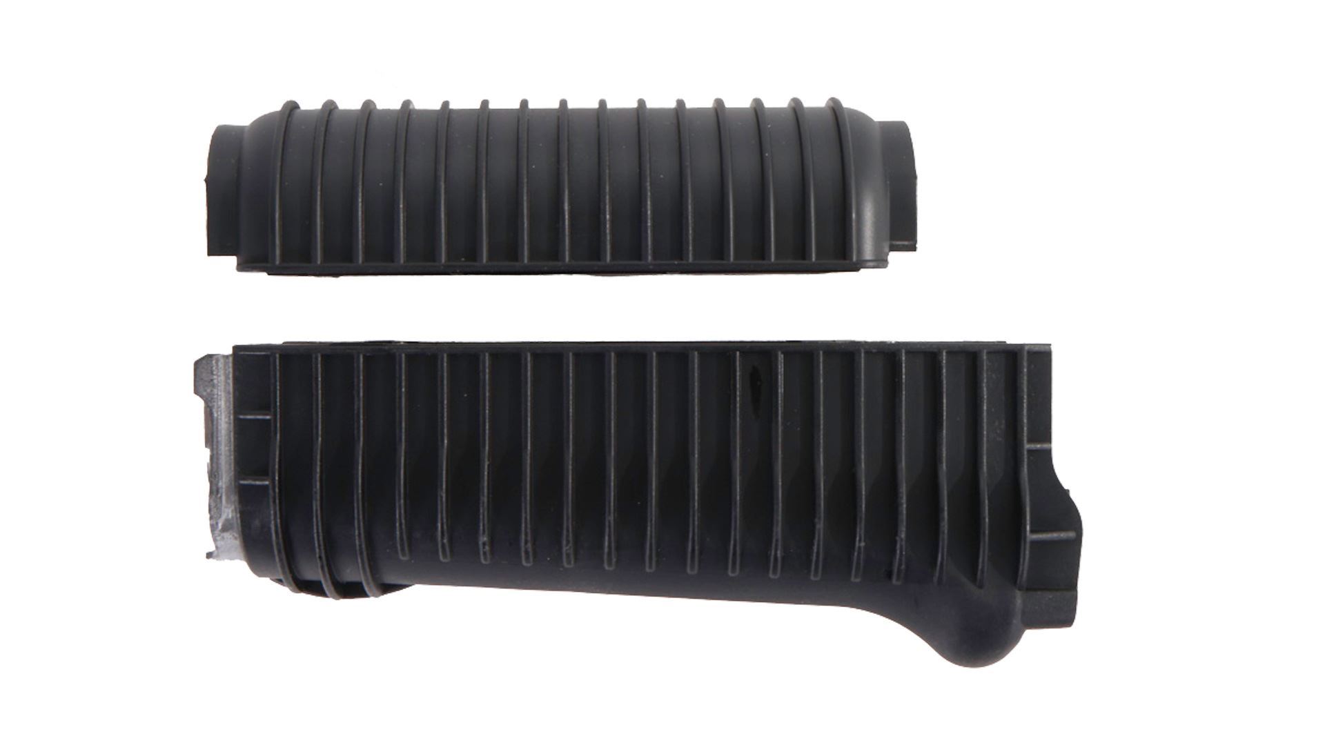 Ribbed Krinkov handguard set for stamped receivers. Black polymer upper and lower handguards. Lower handguard includes stainless steel heat shield. Manufactured in the U.S. by Arsenal Inc.