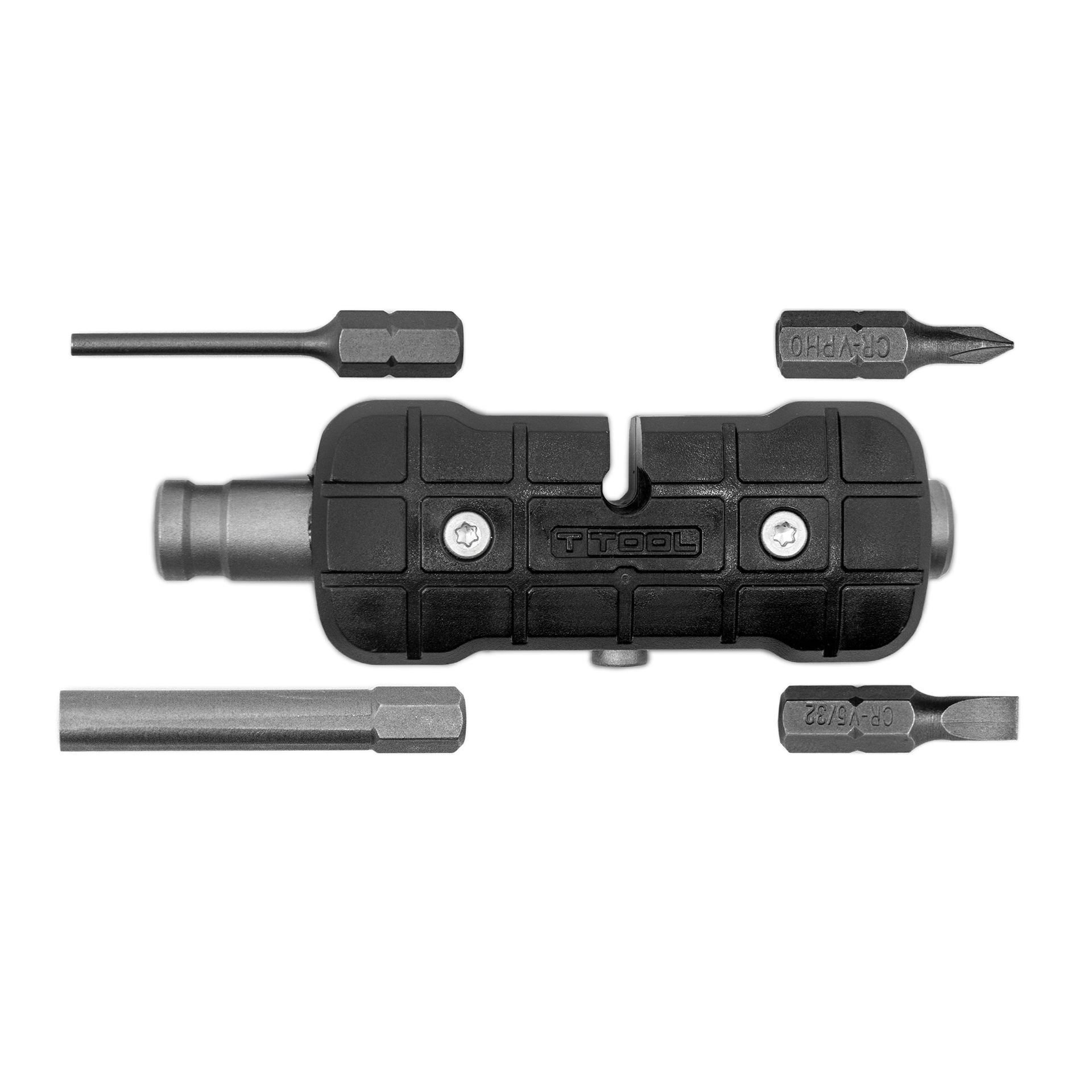 This small yet mighty tool is an essential item for any Glock owner. Handles a variety of maintenance needs for your pistol all in one tool that easily fits in your pocket range bag or pistol case. The base handle has four distinct purposes – 1/4” bit driver 8-32 threaded insert to accommodate additional components Memory-Flex® cable slot for use as a T-handle and punch hammer for resetting pins. The tool also includes four bits that seat in the magnetized bit driver. The pin punch has additional length to full push takedown pins through the frame. Keep from losing the nut on the front site with the magnetized front site adjustment tool. The tool also comes with one 5/32” flat head and one #0 Philips bit.